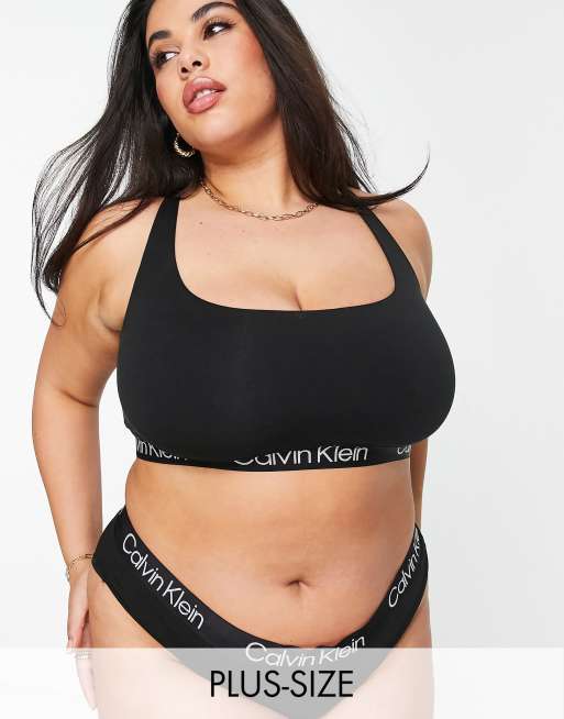 Calvin Klein Plus - Ongevoerde bralette van gestructureerd katoen en polyester en zwart - BLACK