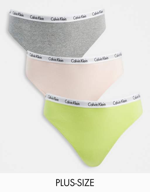 Calvin Klein - Plus Size - Carousel - Set van 3 strings in grijs, koraalroze en cybergroen
