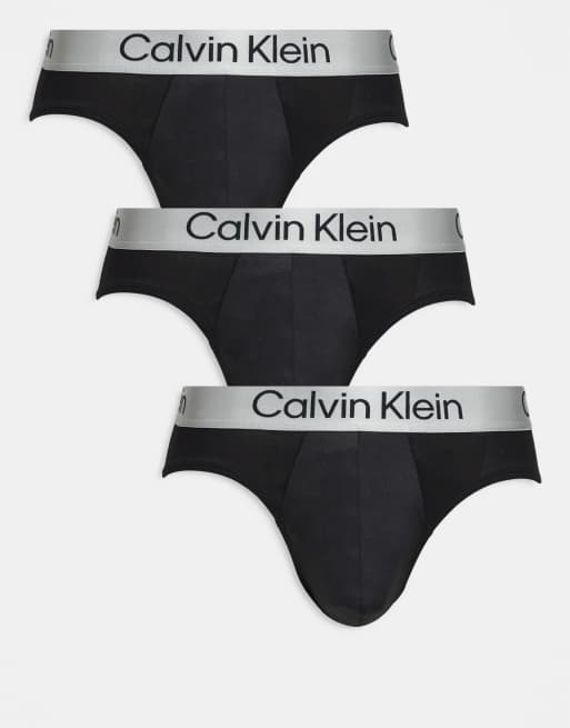 Calvin Klein - Set van 3 hipster-onderbroeken van microvezel met stretch in zwart met grijze tailleband