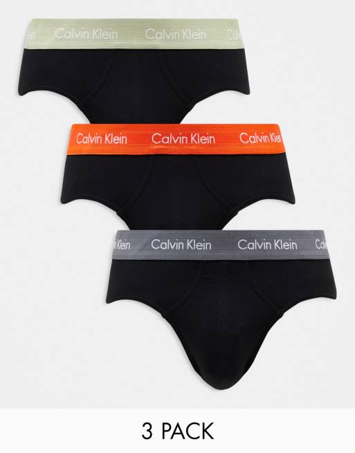Calvin Klein - Set van 3 onderbroeken van stretchkatoen in zwart met gekleurde taillebanden