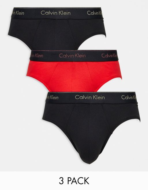 Calvin Klein - Set van 3 slips met taillebanden met gekleurd logo in rood en zwart
