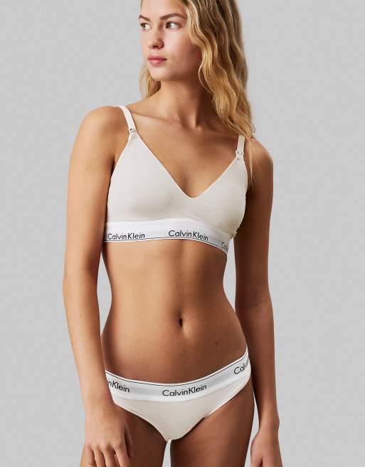 Calvin Klein - Zwangerschapskleding - Modern Cotton - Licht gevoerde triangel bralette met logobies in lichtbeige