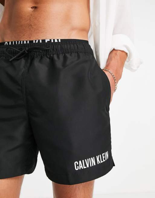 Calvin Klein - Zwemshort met logo op dubbele tailleband in zwart