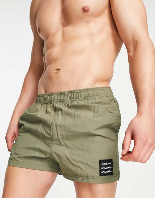 Calvin Klein - Zwemshort met vierkant logo in kaki