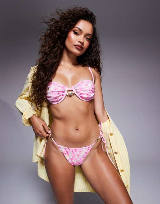 Candypants - Bikinibroekje met gestrikte zijkanten en bloemenprint in roze