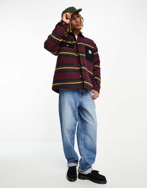 Carhartt WIP - Oregon - Gestreept jack in bordeauxrood