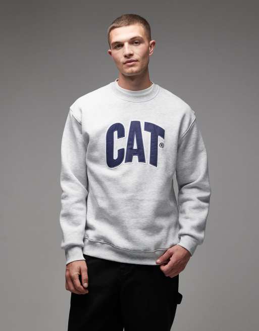 CAT - WWR - Sweatshirt van 300gsm stof met losse pasvorm en geborduurd logo in lichtgrijs