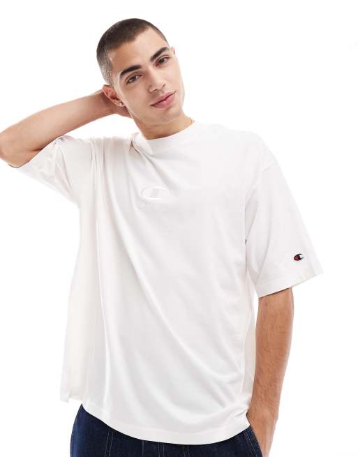 Champion - Legacy - T-shirt met logo in het midden in gebroken wit