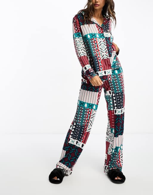 Chelsea Peers - Kerstmis - Lange pyjamaset met patchworkprint in multi