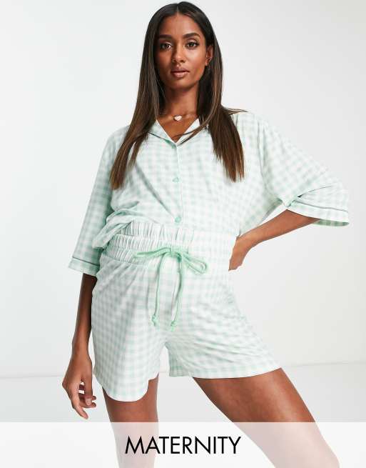Chelsea Peers Maternity - Korte pyjamaset in lichtgroene gingham ruiten