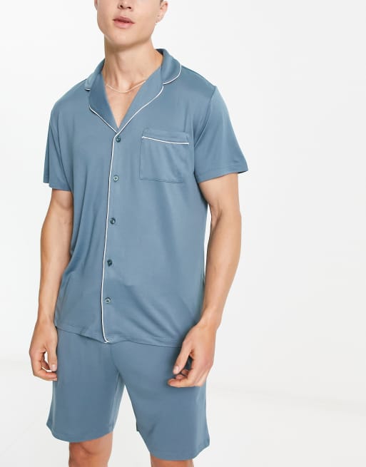 Chelsea Peers - Pyjamaset van modal met short en overhemd met knopen in middenblauw