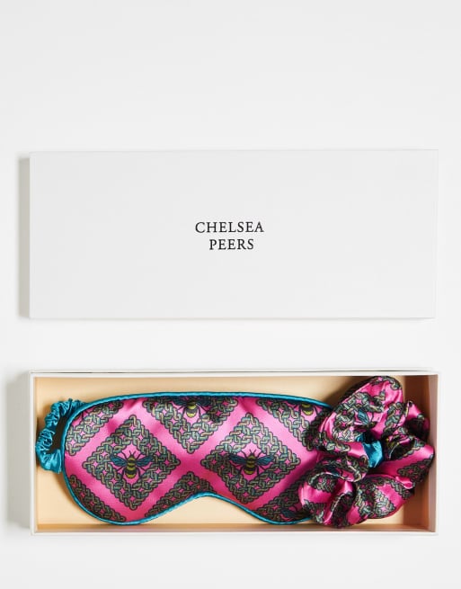 Chelsea Peers - Satijnen set van oogmasker en scrunchie met mozaïek bijenprint in roze
