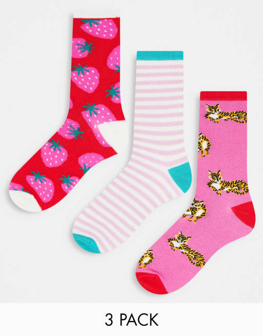 Chelsea Peers - Set van 3 paar sokken met tijger- en aardbeienprint