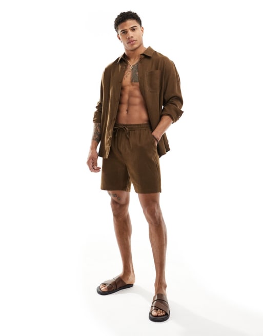 Chelsea Peers - Strand co-ord set van linnenmix in bruin, co-ord set
