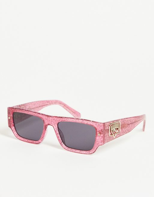 Chiara Ferragani - Vierkante zonnebril in roze glitter