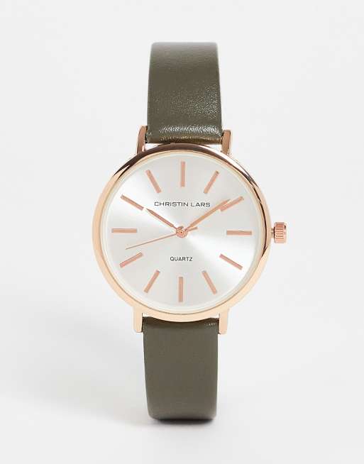 Christian Lars - Dameshorloge met leren bandje in grijs en roségoud