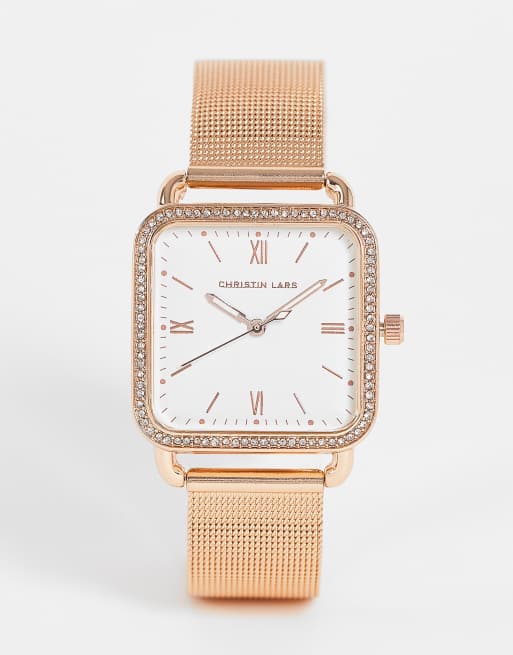 Christian Lars - Dameshorloge met vierkante wijzerplaat in rosé-goud