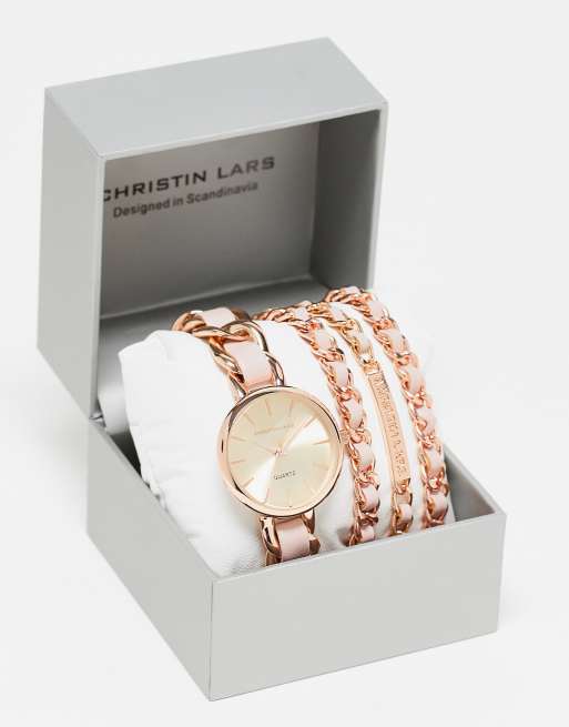 Christin Lars - Cadeauset met horloge en armbanden in roze