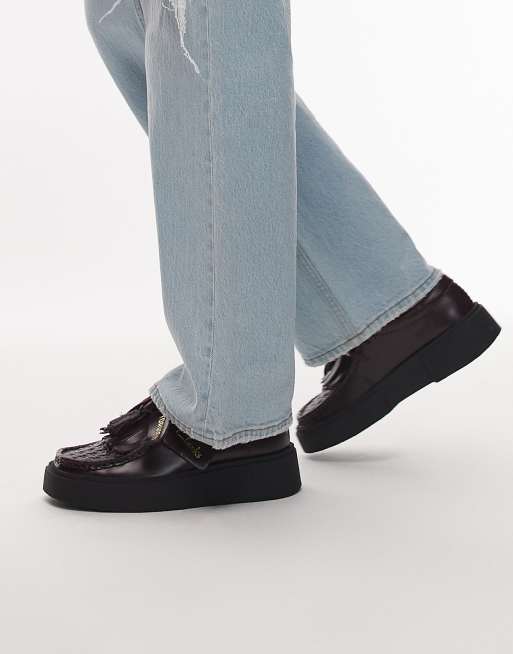 Clarks - Torview - Leren schoenen met kwastjes en visgraatmotief in dieppaars