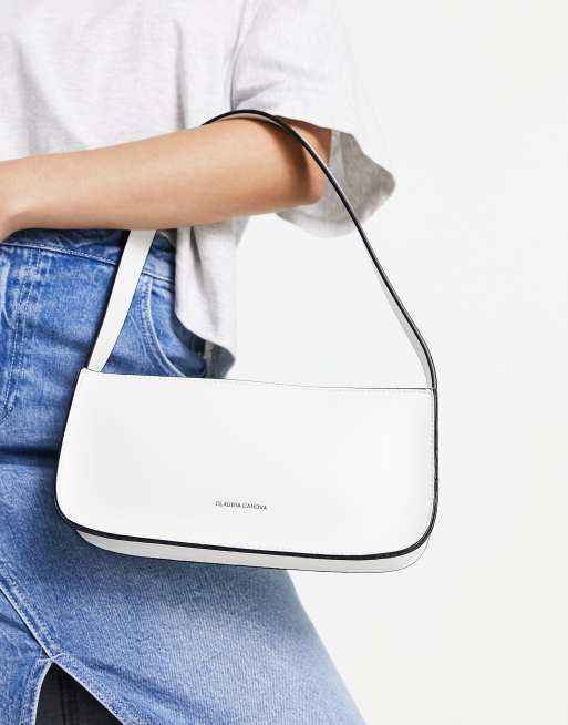 Claudia Canova - Baguette schoudertas met contrasterende biezen in wit
