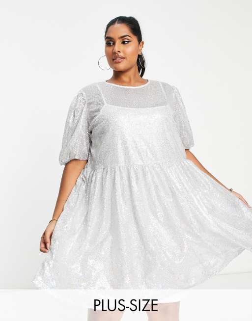Collective The Label - Curve - Mini jurk met pofmouwen en lovertjes in zilver
