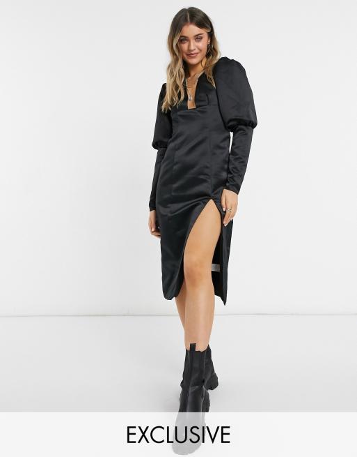 Collective the Label - Exclusives - Diepuitgesneden midi-jurk met dijsplit en oversized mouwen in zwart
