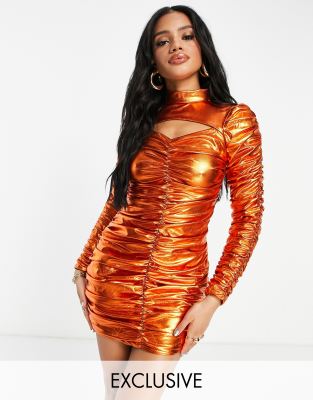 Collective The Label - Exclusives - Mini-jurk met lange mouwen, uitsnijding en lovertjes in oranje