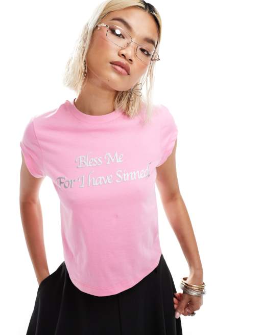 COLLUSION - Aansluitend T-shirt met Bless me-print in roze