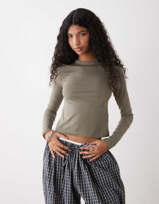 COLLUSION - Baby tee met lange mouwen in kaki