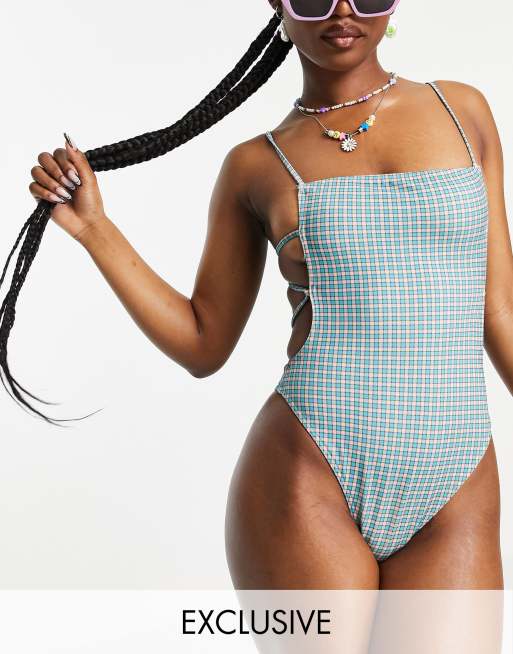 COLLUSION - Badpak met meerdere bandjes op de rug in gingham ruit - MULTI