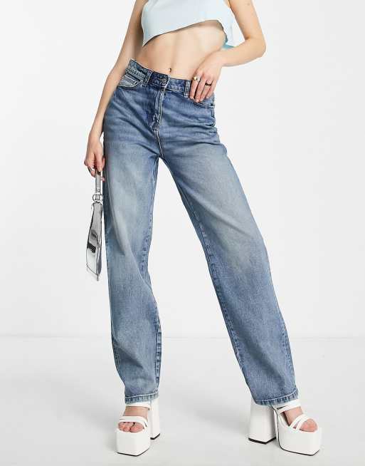 COLLUSION - Baggy dad jeans met halfhoge taille in stonewash