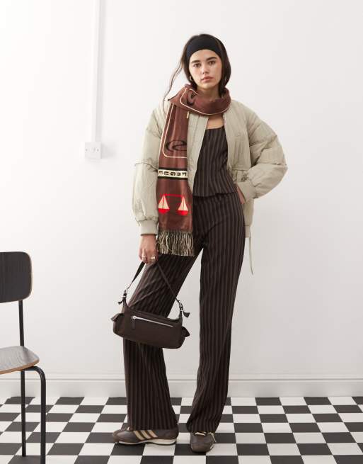 COLLUSION - Broek met lage taille en krijtstreep in bruin