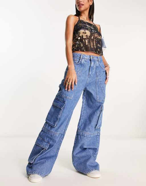 COLLUSION - Cargojeans met wijde pijpen in blauw