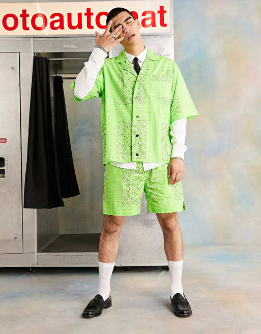 COLLUSION - Co-ord set van overhemd en short met bandanaprint in groen