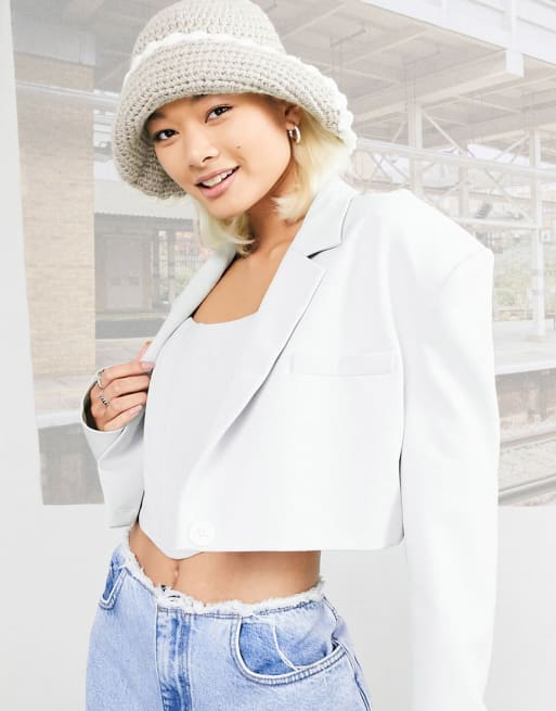 COLLUSION - Cropped blazer en korset met structuur in ijsblauw
