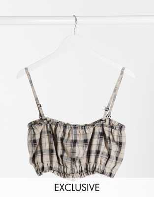 COLLUSION - Cropped bralette met ruiten in saliegroen, deel van co-ord set