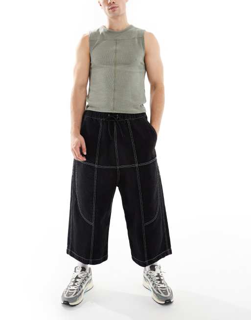 COLLUSION - Cropped skater jeans met elastische taille met trekkoord en contrasterende stiksels in zwart