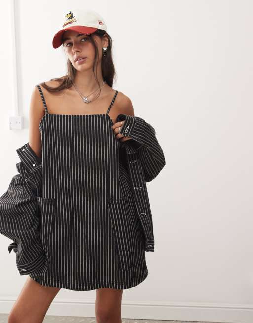 COLLUSION - Denim overgooier-jurk in zwarte streep, deel van co-ord set