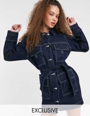 COLLUSION - Denim overhemdjurrk met riem in onbewerkte blauwe wassing