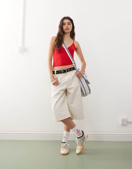 COLLUSION - Denim skater-jort met contrasterende stiksels in ecru
