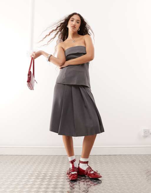 COLLUSION - Elegante geplooide kilt in grijs, deel van co-ord set