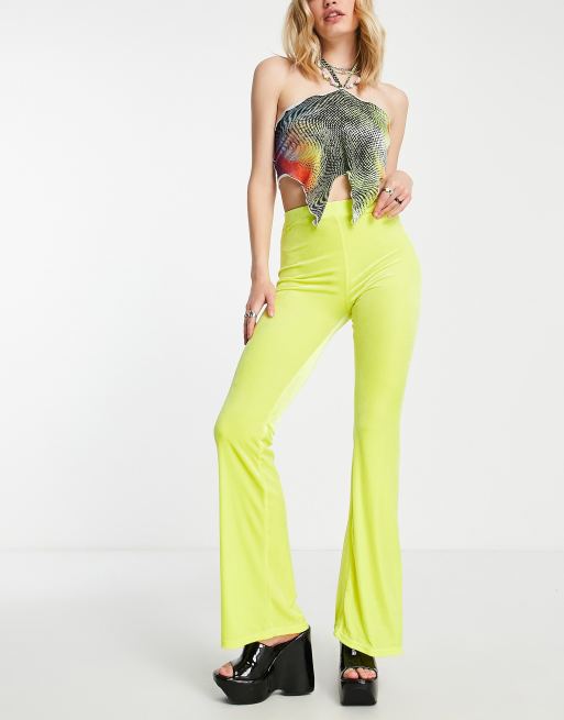 COLLUSION - Fluwelen flared legging in neongeel, deel van co-ord set