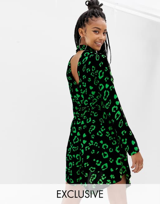 COLLUSION - Fluwelen miniskaterjurk met luipaardprint