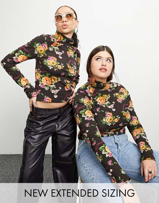 COLLUSION - Gebloemde top met col in bruin