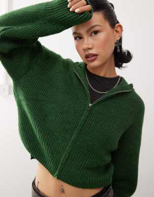 COLLUSION - Gebreid vest met rits en geribbelde kraag in donkergroen<sup></sup>