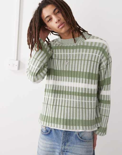 COLLUSION - Gebreide gestreepte oversized trui in groen