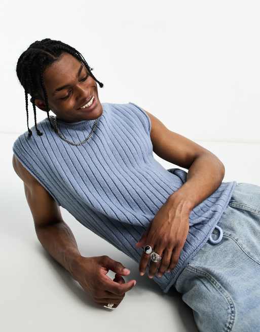 COLLUSION - Gebreide tanktop met brede ribbels in blauw
