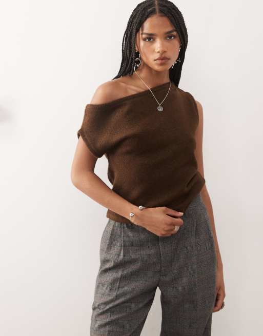 COLLUSION - Gebreide top met blote schouders in chocoladebruin