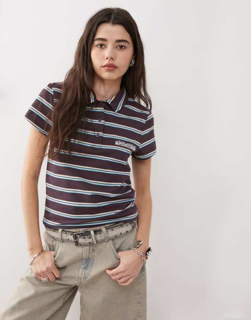 COLLUSION - Gekrompen gestreepte polo in bruin