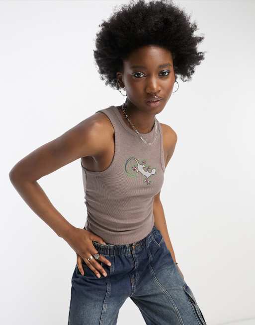 COLLUSION - Geribbeld hemdje gerimpelde zijkanten en print van hagedis in bruin